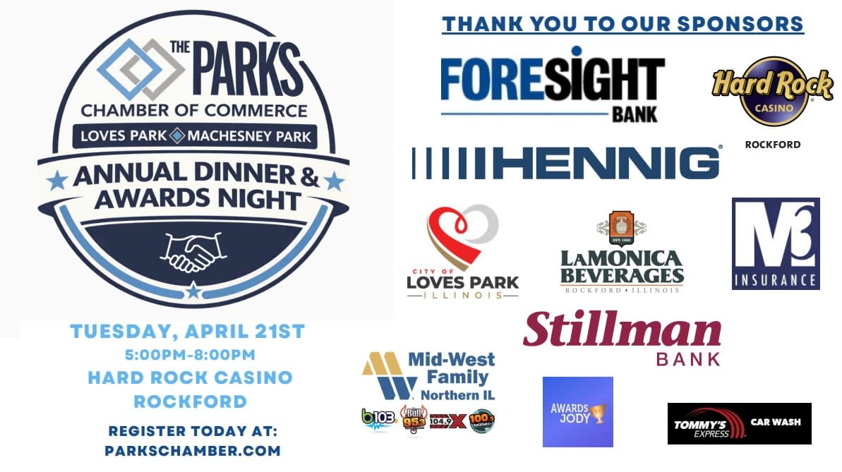 Join us for a fun night at the Hard Rock Casino as we reintroduce The Parks Chamber Annual Dinner and Awards night! Come out and celebrate local business and community leaders, network with other chamber members and enjoy a delicious dinner, plus drinks and a casino voucher! Keynote speaker: Geno Iafrate, President - Hard Rock Casino Rockford.